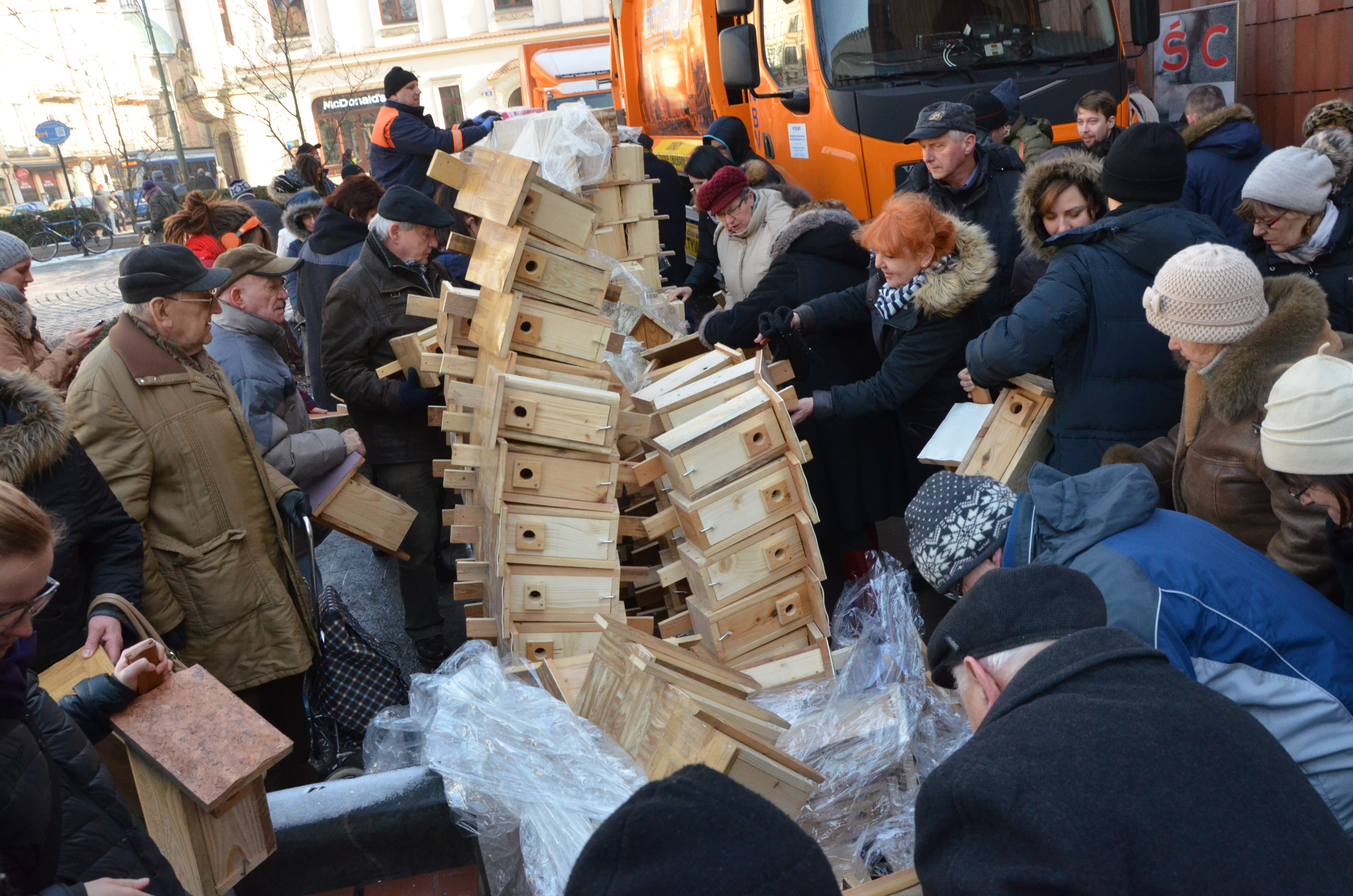 14 lutego o godz. 12.00 pod Magistratem (plac Wszystkich Świętych 3/4) ze specjalnego samochodu MPO będą rozdawane… budki lęgowe dla ptaków.
