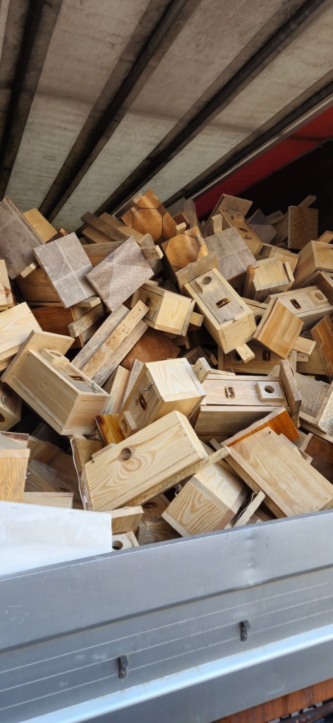 Z takich części powstają budki lęgowe dla ptaków i karmniki. W ten sposób w zeszłym roku wybudowano 300 budek lęgowych dla jerzyków, 200 dla sikorek oraz 100 karmników.